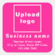 Customisable sticker that you can put your business name, address and phone number. You can use it as marketing material to advertise your business or to promote your brand name to customers or clients. Sticker that you can use to build brand name awareness. You can also use it as accessory of product packaging materials. Designs are white texts on pink background and square shape. To customise this sticker, upload your business logo, type your business or company name, address and phone number. After uploading logo and typing texts, please check the appearance. If the appearance is pleasing to you, you can place your order now. If you need to resize and move the logo and texts to fit on this sticker or on other sizes that you will choose, please change in the design tool. You can also make other changes according to the appearance that you prefer in the design tool such as changing the background colour, font colour and font style.