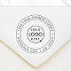 A simple custom round 2.5" return address rubber stamp featuring a contemporary font and subtle dot symbol accents and double border in a clean, modern minimalist style. Perfect for adding a professional touch to your mail, packaging, and business correspondence, this design can be easily personalized with your company logo, name, and address. Ideal for small businesses, creatives, or brands that value elegant simplicity, this versatile wooden stamp adds polish and consistency to every delivery. A timeless, understated design that elevates your brand’s presentation while keeping your stationery clean, modern, and effortlessly professional.