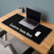 The desk mat is black. At the bottom, there's white display text you can replace with your company name or a custom message.