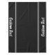 This black and white tablecloth has a text template. An elegant script forms a line of black display text that you can edit. The line of display text appears twice on the tablecloth.