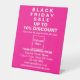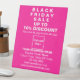 Customisable pedestal sign with Black Friday Sale, your business name and other information. Pedestal sign that you can use as marketing material to attract more customers. Customise it and display it to convince more customers to buy your products or clients to like your services. Design colours are white texts on pink background. Contents are Black Friday Sale, percent discount that you will offer, sale dates, your business name, logo, address, phone number, e-mail and website or your business social media page. Please check the appearance after uploading logo and typing texts. If the appearance is pleasing to you, you can place your order now. If you need to resize and move the logo and texts to fit on this pedestal sign or on the size that you will choose, please change in the design tool. You can also make other changes in the design tool according to the appearance of this pedestal sign that you prefer such as changing the background colour, font colour and font style. Wishing you more sales this Black Friday.