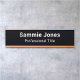 Personalise our changeable door name plate with recipient name, job title, or other custom text. You can customise the black background colour. Available in other metal colours in two sizes – standard 2 inch x 8 inch or long 2 inch x 10 inch – and in two styles – as a desk name plate or a door name plate. No minimum order quantity and no setup fee.