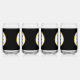 You can add your company's logo to this black, white, and faux gold promotional glassware set. The faux (not foil) gold is an artistic rendering.