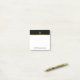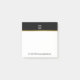 At the top, there's a thick black stripe that has a display image you can replace with your company logo. A thin faux gold stripe is under the black stripe. A white writing area is under the stripe. Black display text you can replace with a custom message is at the bottom. (Shown: phone number and www.yourwebsite.com) The gold look is artwork (not foil).