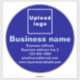 Large round vinyl sticker that you can customise to put your business name and other information of your business. Display it as marketing material to advertise your business or to promote your brand name to customers or clients. You can also use it as packaging material for large boxes. Customisable vinyl sticker that you can use to build brand name awareness. Design colours are light blue and white texts on blue background. To customise this sticker, upload your business logo, type your business name, address, phone number, e-mail and website or your business social media page. Please check the appearance after uploading logo and typing texts. If the appearance is pleasing to you, you can place your order now. If you need to resize and move the logo and texts to fit on this sticker or on the size that you will choose, please change in the design tool. You can also change the background colour, font colour and font style in the design tool.