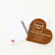 Would you like to use different shape of notebook instead of usual style? Please see this heart shape spiral notebook. You might like it. The cover is customisable. You can put your business name on it to build brand name awareness. You can include it in your promotional products to promote your brand name or in your marketing materials to advertise your business to customers or clients. An office and school supply that you can give it as giveaway item. Cover colour is brown. Font colours are light brown and brown. To customise the cover of this notebook, upload your business logo, type your business or company name, address, phone number, e-mail and website or social media page. Please check the appearance after uploading logo and typing texts. If the appearance is pleasing to you, you can place your order now. If you need to resize and move the logo and texts to fit on the cover of this notebook or on other styles and sizes that you will choose, please change in the design tool. You can also make other changes according to your preference in the design tool such as changing the cover colour, font colour and font style.