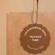 Scalloped paper ornament card with your business name, logo, city or town and state. You can use it as accessory of packaging material of your product. Ornament card as tag of your product. Ornament card that you can use as marketing material to promote your brand name or to advertise your business to customers. Ornament card with your business brand to build brand name awareness. Design colours are light brown texts on brown background. Please check the appearance on front and back sides after uploading logo and typing texts. If the appearance is pleasing to you, you can place your order now. If you need to resize and move the logo and texts to fit on this ornament card or on the style that you will choose, please change in the design tool. You can also change the background colour, font colour and font style in the design tool.