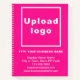 Are you looking for notebook that you will use to write business records, transactions, information, notes, minutes of meeting, ideas, reminders or use as business diary? Do you also need more space to write notes? Please see this large pink spiral notebook. You might like it. Font colour is white. The cover is customisable. You can put your business name on it to build brand name awareness. You can also include it in your promotional products to promote your brand name or include it in your marketing materials to advertise your business. An office and school supply that you can give it as giveaway item to your customers or clients. To customise this notebook, upload your business logo, type your business or company name, address, phone number, e-mail and website or social media page. Please check the appearance after uploading logo and typing texts. If the appearance is pleasing to you, you can place your order now. If you need to resize and move the logo and texts to fit on the cover of this notebook or on other sizes and styles that you will choose, please change in the design tool. You can also make other changes according to your preference in the design tool such as changing the cover colour, font colour and font style.