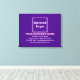 Canvas print that you can customise to put your business name and other information of your business. You can use it as marketing material to advertise your business or to promote your brand name to customers or clients. Customisable canvas print that you can use to build brand name awareness. Customise it and display it on the wall of your store, shop, office, lobby, reception, entrance or in suitable area visible to customers or clients. Design colours and shape are pink and white texts on purple background and landscape format rectangle shape. To customise this canvas print, upload your business logo, type your business name, address, phone number, e-mail and website or social media page. After uploading logo and typing texts, please check the appearance. If the appearance is pleasing to you, you can place your order now. If you need to resize and move the logo and texts to fit on this canvas print, please change in the design tool. You can also make other changes in the design tool according to the appearance of this canvas print that you prefer such as changing the background colour, font colour and font style.