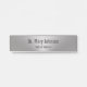 This faux silver office door sign has a brushed metal look. (The silver look is artwork, not foil.) There are two lines of dark grey display text that you can edit to show the doctor's name and speciality or professional title.