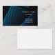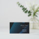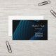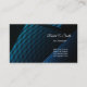 This business calling card is shown in a white basic card stock with white text on a black and blue abstract print.