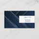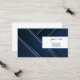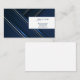 This business card is shown in the basic card stock with a modern abstract print in deep blue colours with blue text.