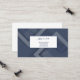 This business card is shown in the basic card stock with a modern abstract print in deep blue colours with blue text.