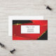 This business card is shown in a black and red golden bling abstract pattern with black text.