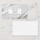 This business card is shown in a grey colour tones abstract pattern with black text.