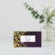 This business card is shown in the basic card stock with a modern abstract print in purple and gold colour tones with black coloured text.