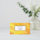 This business card is shown in a yellow colour abstract pattern with black text.