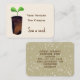 Sow a seed, green moment, time to create something new and fresh. Simple is the best. It is time for action. Beautiful business card wit a sapling growing from a seed.