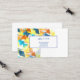 This business card is shown in the basic card stock with a modern abstract print in multi colour tones with blue coloured text.