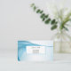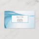 This business card is shown in the basic card stock with a modern abstract print in blue tones with black text.
