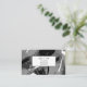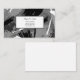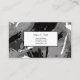 This business card is shown in a black and grey colour tones abstract paint pattern with black text.