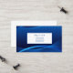 This business card is shown in a blue colour abstract pattern with blue text.