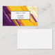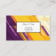 This business card is shown in the basic card stock with a modern abstract print in purple and gold tones with black text.