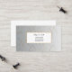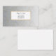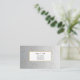 This business card is shown in a grey and gold tones abstract pattern with black text.