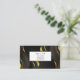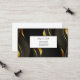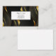 This business card is shown in a black and gold abstract swirl pattern with black text.