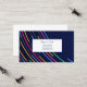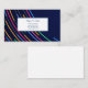 This business card is shown in a deep blue background colour with multi bright colours abstract swirl pattern with blue text.