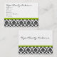 Black and White Damask Floral with Apple Green Trim-Custom Business Cards-shown on linen card stock- Black and White Damask Floral with Red Trim-Custom Business Cards-shown on linen card stock-