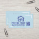 A minimalist business card designed for cleaning service businesses. Featuring a soft blue background and a simple house icon, this card creates a clean and trustworthy look for your brand. Perfect for cleaning companies, housekeeping services, and home organisation professionals. Customise with your name, business details, and contact information to make a strong first impression.