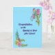 This pretty congratulations card for the opening of a new florist has a medium blue background with designer illustrated flowers in the right upper corner and the lower left hand corner with a border of colourful dots on the top front of the card. Perfect way to congratulate your new florist. Thanks to the hungryjpeg for some of the elements in the design.
