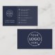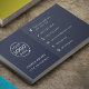 A simple custom icon business card template in a modern minimalist style featuring a navy blue background with a semi-transparent soft gray panel. This versatile design can be easily updated with your company logo, photo, or graphic along with your name, title, address, phone, email, and social media details. Perfect for professionals, freelancers, and small business owners who want a polished and contemporary look. The icons can be customized or replaced to match your brand style, allowing you to include platforms like Instagram, Facebook, LinkedIn, Twitter, WhatsApp, or YouTube. A flexible and elegant design that combines simplicity with function, giving your business card a truly bespoke, professional touch.