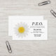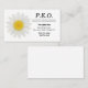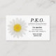 This business card is for members of P.E.O., an organisation that raises college scholarship money for women. It features a marguerite flower and your contact information and is perfect to hand out to potential scholarship applicants.