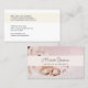 This business card combines soft beige and pastel pink hues for a touch of feminine elegance. The front showcases graceful calligraphy, while the back features a clean, modern font for clarity. A photograph of gold rings and elegant florals adds a refined, tranquil touch, making this card the perfect blend of style and professionalism.
