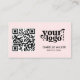 Looking for a sleek way to connect? This modern business card features a scannable QR code for a professional edge. Easily add your logo to this minimalist DIY card template for a personalized, custom pink look that defines your small business.