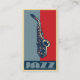 Illustrated business cards for saxophone players or instructors; music design with illustration of saxophone in hope poster pop art style; red and blue design is personalised with customisable text fields for adding your name, business, address and other informations