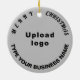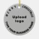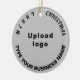 Merry Christmas! Ceramic ornament with Merry Christmas greeting texts, your business or company name and logo. Design is black texts on grey background and on circle shape. Ornament to decorate the Christmas tree in your store, shop or office. Ornament to visibly greet your customers this holiday season and to advertise your business or promote your brand name. Customise it and use it to build brand name awareness. Please check the appearance after uploading logo and typing your business name. If the appearance is pleasing to you, you can place your order now. If you need to resize and move the logo and texts to fit on this ornament or on other styles that you will choose, please change in the design tool. You can also make other changes according to your preference in the design tool such as changing the ornament colour, font colour and font style. Merry Christmas! Wishing you more sales this holiday season.