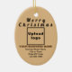 Merry Christmas! Ceramic ornament with Merry Christmas greeting texts, your business or company name, logo, address and phone number. Design is dark brown and black texts on light brown background and on oval shape. Ornament to decorate the Christmas tree in your store, shop or office. Ornament to visibly greet your customers this holiday season and to advertise your business or promote your brand name. Customise it and use it to build brand name awareness. Please check the appearance after uploading logo and typing texts. If the appearance is pleasing to you, you can place your order now. If you need to resize and move the logo and texts to fit on this ornament or on other styles that you will choose, please change in the design tool. You can also make other changes according to your preference in the design tool such as changing the ornament colour, font colour and font style. Merry Christmas! Wishing you more sales this holiday season.