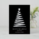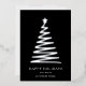 A stylish modern corporate business flat holiday greeting card with a bold foil overlay christmas tree to add sparkle on black background. The greeting and company name can be easily customised to suit your own business. A trendy, fun and professional design to stand out this holiday season! the foil overlay comes in gold silver and rose gold and all the other text is in white.