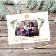 Celebrate the season in style with this modern and elegant Christmas card, featuring a faux gold geometric photo frame adorned with festive pine branches and cones. The front showcases a chic hand-lettered 'Happy Holidays' greeting, perfect for conveying warm wishes. Personalise the card with your business logo, s photo and name to create a professional touch. The back offers the option to include a custom message or leave it blank for a clean finish. Ideal for sending holiday cheer to clients, partners, and employees