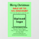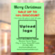 Merry Christmas! One of the most celebrated holidays of the year. It is also one of the best seasons to advertise your business or to promote your brand name to customers or clients. Customisable window cling with Christmas Sale, your business name and other information. Window cling that you can use as marketing material to attract more customers. Customise it and display it to convince more customers to buy your products or clients to like your services. Window cling for December or Christmas in July. Design colours are dark green and red texts on light green background. Contents are Merry Christmas greeting, sale texts with percent discount that you will offer, sale dates, your business name, logo, address, phone number, e-mail and website or your business social media page. Please check the appearance after uploading logo and typing texts. If the appearance is pleasing to you, you can place your order now. If you need to resize and move the logo and texts to fit on this window cling or on the size and shape that you will choose, please change in the design tool. You can also change the background colour, font colour and font style in the design tool. Merry Christmas! Wishing you more sales this holiday.