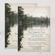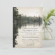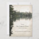 This weekend business or church retreat invitation card features two eagles or ospreys flying above distant evergreens and rock structures that are reflected on the surface of a calm, lightly rippled body of water under an overcast sky from the point of view of a paddler sitting in a kayak on the water | the image has the look of an old photograph and was created from my own personal kayaking photograph | Part of katzdzynes’ Rustic Lakeside family reunion / business retreat collection >>> https://www.zazzle.com/collections/119413093835947250