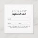 A beautiful way to book your customers next appointment with this professional black white business appointment card. Client appointment card can be personalised to your text, QR code, social media handle and business details.