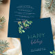 Modern trendy minimalist red green winter holiday business corporate custom text thank you greeting card template featuring Happy Holidays typography script lettering and botanical greenery with seasonal red berries. ++++++++++ Personalise it with your text and signature on both sides to send your greetings and thanks to your business partners and customers!