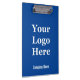 Does your company need branded products for presentations and other meetings? You can add your company's logo to both sides of this deep blue clipboard. A line of white display text is under the image. You can edit the text to show your website, company name, or a custom message. There are no minimums for this promotional product. Deep blue is hex code #004095.