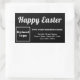 Happy Easter! Wishing you an Easter filled with hope, faith, love, joy and peace! A holiday and season to celebrate this March or April and to advertise also your business. Black rectangle sticker with Easter greeting that you can customise by uploading your business logo and typing your business name, address and phone number. Customise it and use it to greet your customers or clients this Easter and as a marketing material to advertise your business or to promote your brand name. You can also use it as an accessory of the packaging materials of your product. Customisable rectangle sticker that you can use to build brand name awareness. Please check the appearance after uploading logo and typing texts. If the appearance is pleasing to you, you can place your order now. If you need to resize and reposition the logo and texts to fit on this sticker, please adjust in the design tool. You can also change the font style, font colour and background colour in the design tool. Happy Easter and wishing you more sales.