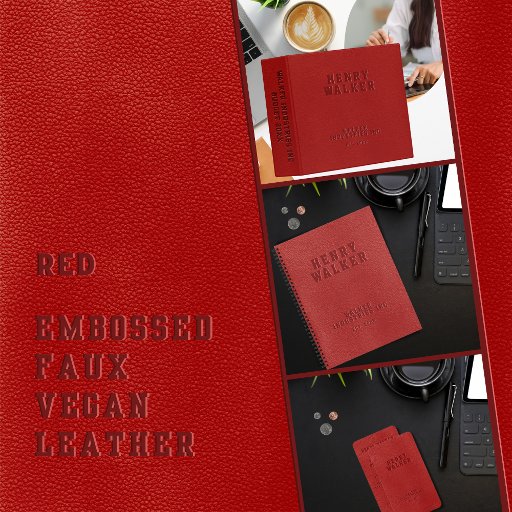 Business Embossed Red Vegan Leather Thermal Tumbler