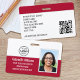 Create a professional appearance with this personalised business identification badge. A simple and stylish template with your logo, ID photo, name, job title and company name. Other information can also be added, including your employee number, location or expiration date. Contact information is on the back, along with additional information and a QR code. Colours: red, grey and white. Horizontal format.